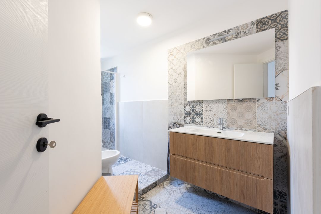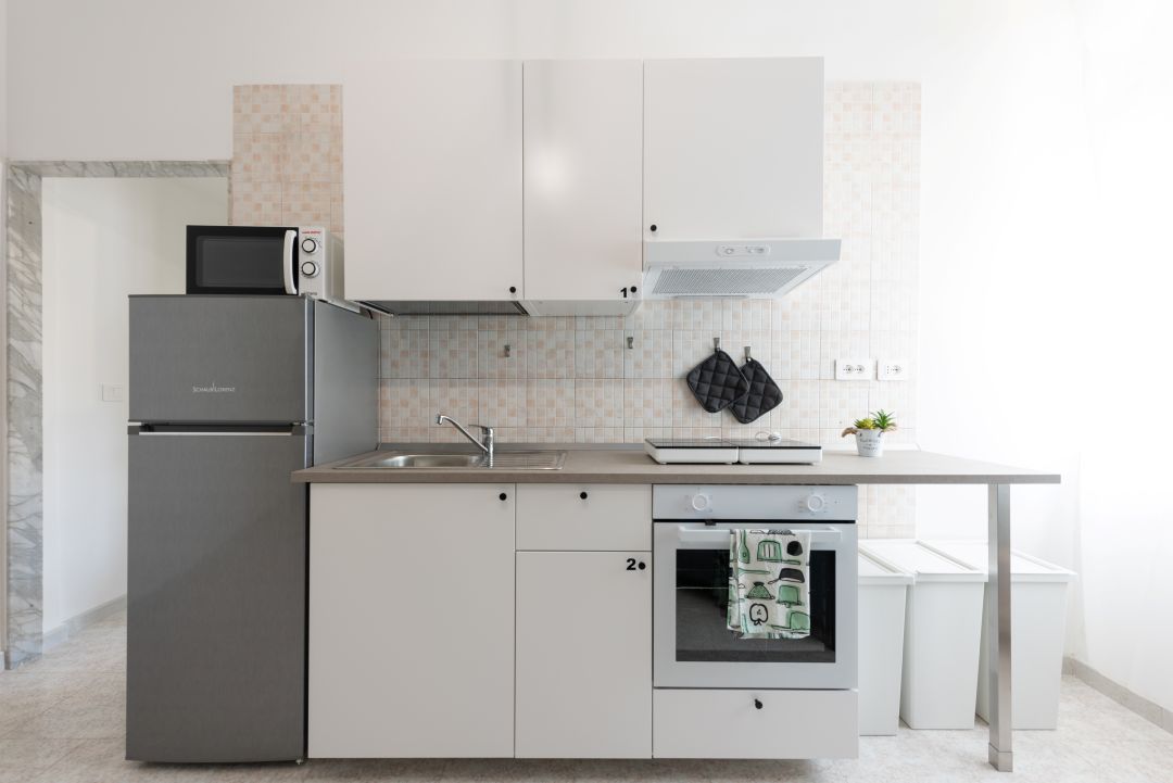 L’appartamento si compone di 2 camere da letto in totale, 1 bagno, 1 zona lavanderia e una cucina completamente attrezzata. In aggiunta a ciò, è presente anche un angolo relax con divanetto.