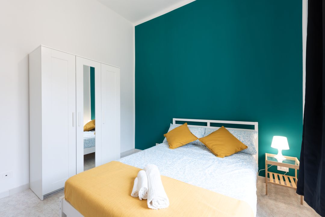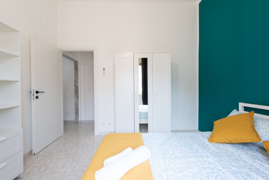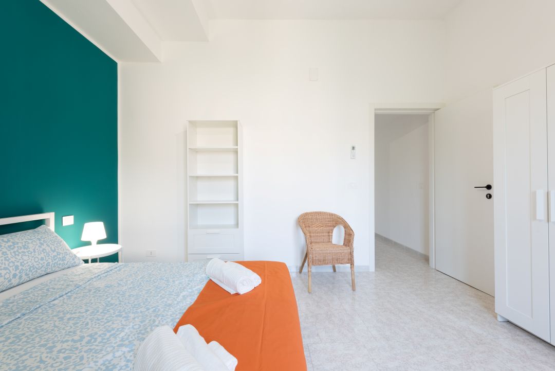 La camera si trova in un appartamento composto da 2 camere in totale, un bagno, una cucina completamente attrezzata ed un angolo relax con divano.