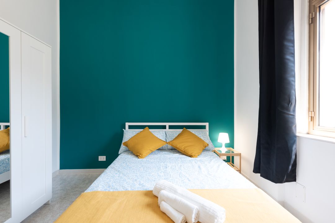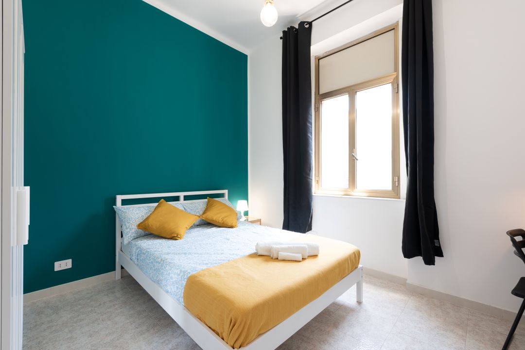 Graziosa e confortevole camera da letto con finestra situata in un appartamento condiviso al terzo piano senza ascensore.
